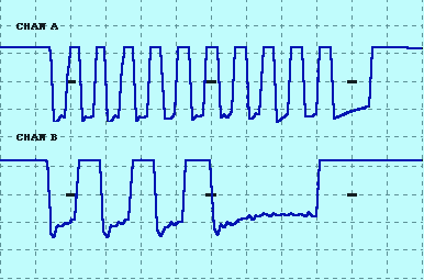 Channel A is the Clock signal; channel B is the Data signal.